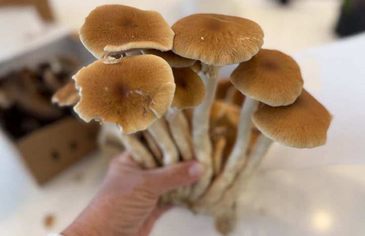 Pioppino PFs, also known as velvet pioppino or black poplar PFs, are a Small to medium-sized PF that grows in clusters on decaying hardwood, particularly poplar trees. They have a distinctive appearance with a brown cap and long, white or cream-colored stem, and are known for their firm texture and nutty flavor.